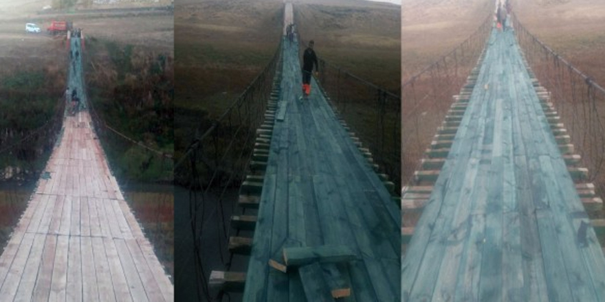 Tüm tehlikelere rağmen yöre halkı için vazgeçilmez güzergah olma özelliğini koruyan yaklaşık 34 yıl önce yapılan asma köprü, geçtiğimiz günlerde Akyaka Kaymakamlığı Köylere Hizmet Götürme Birliği tarafından tadilata alındı.