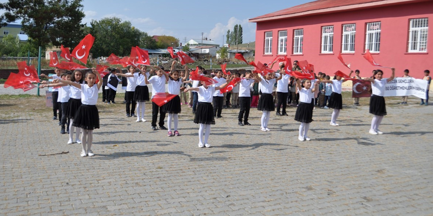 İlçe Kaymakamı Abdil Koç, kurum amirleri, velilerin ve öğrencilerin katıldığı programda şiirler okundu, okula yeni başlayan birinci sınıf öğrencilerine bayrak devri yapıldı.