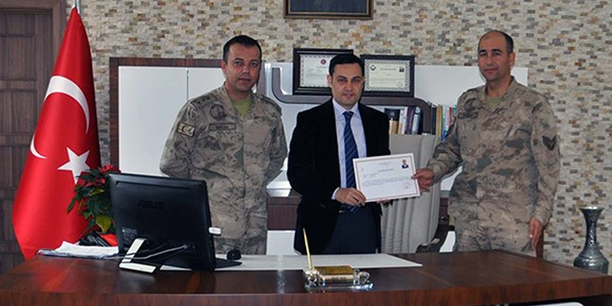 Arpaçay İlçe Kaymakamı Abdil Koç, İlçe Jandarma Komutanlığında görevli Astsubay Mustafa Özdemir’i Başarı Belgesi ile ödüllendirdi.