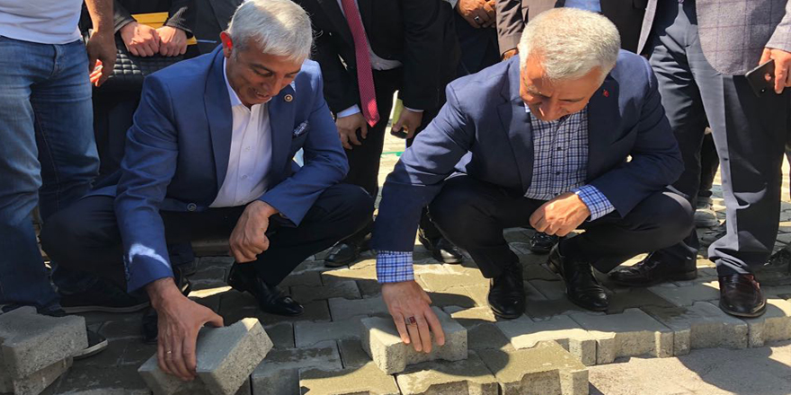 Ulaştırma, Denizcilik ve Haberleşme eski Bakanı Ahmet Arslan ve TBMM Tarım ve Köyişleri Komisyon Başkanı Prof. Dr. Yunus Kılıç Arpaçay’da yapımı devam eden yol çalışmasında parke taş döşedi.