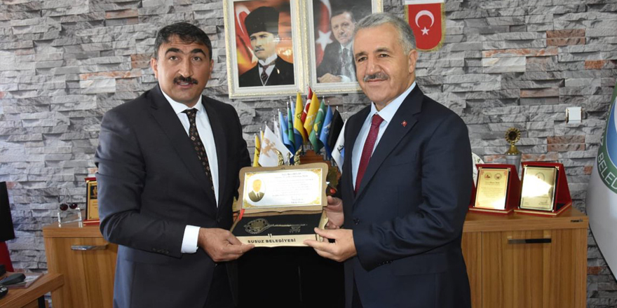 Susuz Belediye Başkanlığını da ziyaret eden Arslan ve Kılıç Belediye Başkanı Murat Uray tarafından karşılandı. Başkan Uray ile Susuz’a yapılan ve yapılacak olan yatırımlar hakkında istişare eden Arslan’a katkılarından dolayı Susuz’un anahtarını hediye etti.