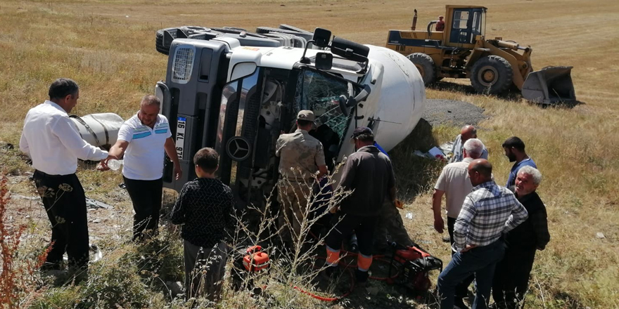 Kars’ta yoldan çıkan beton mikseri devrildi. Kazada bir kişi yaralandı.