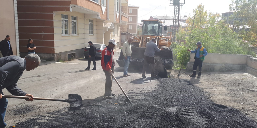 Kars Belediyesi il merkezindeki ara sokaklarda sıcak asfaltlı yama çalışmalarına devam ediyor