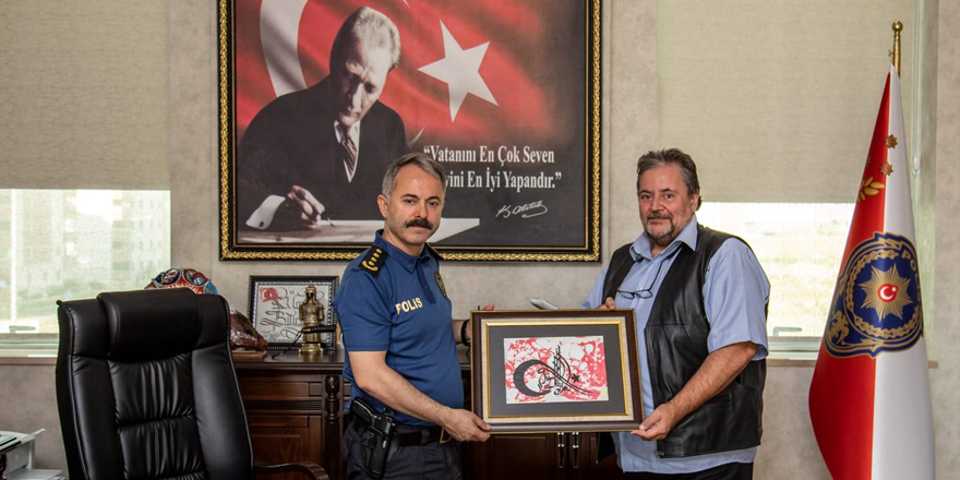 Dr. Bayburtluoğlu, ziyaretin anısına Emniyet Müdürü Bitirik’e tablo hediye etti.