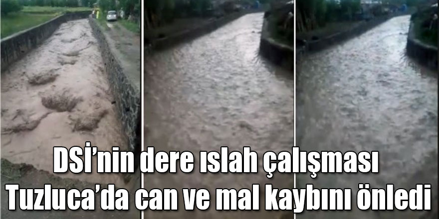 Iğdır’ın Tuzluca İlçe Merkezinde gerçekleşen ani sağanak yağış nedeniyle meydana gelen selin ikincisi de, DSİ Kars Bölge Müdürlüğü tarafından ıslah çalışmaları devam eden Tuzluca Deresinde alınan önlemler neticesinde, can ve mal kaybı olmadan atlatıldı.