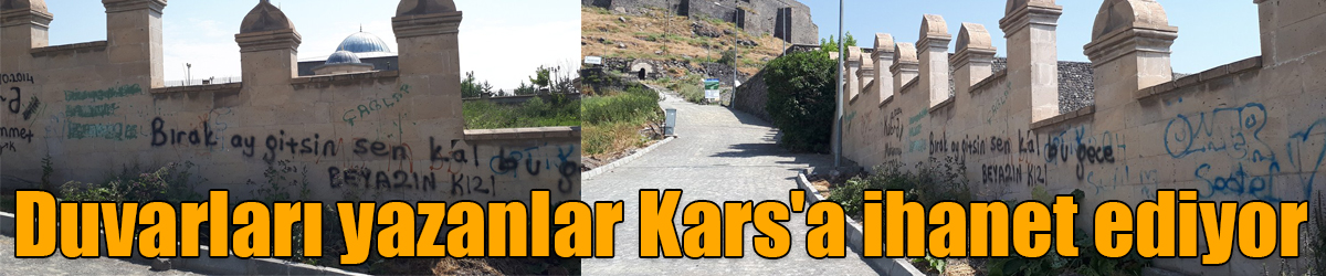 Tarih, doğa, inanç ve kültür varlıkları gibi turizm destinasyonları ve sayısız zenginliklere sahip Kars’ta, kendini bilmez ve sorumsuz bazı kişilerin boş gördükleri her duvara yazıkları yazılar tüm bu özellikleri baltalamaya devam ediyor.