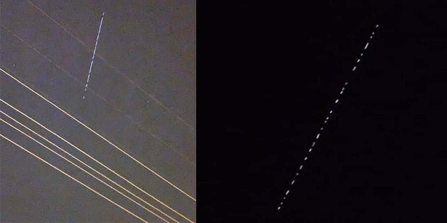 atandaşları tedirgin eden gökyüzündeki sıralı ışıkların Starlink uydularından kaynaklandığı belirtildi.