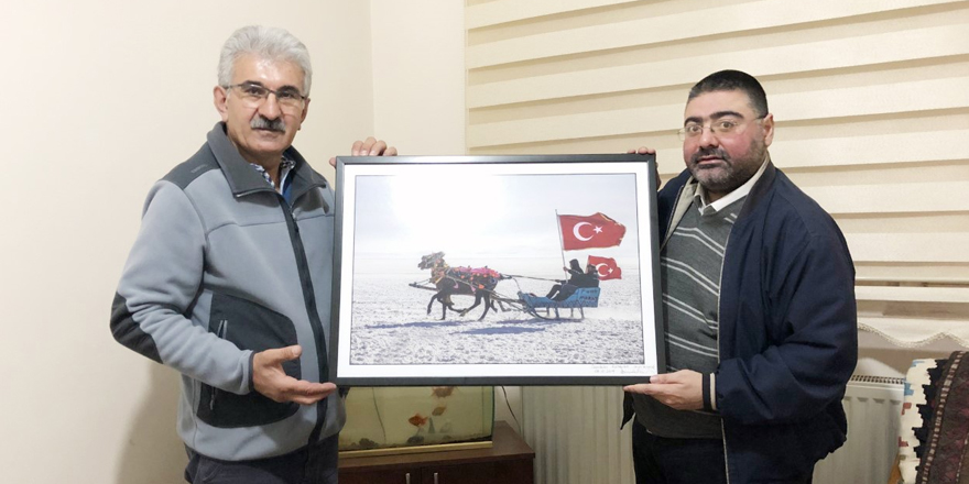 Ziyarette, Özgen Beşli, KKDGC Başkanı Ercüment Daşdelen’e Çıldır Gölünde çektiği fotoğraf tablosunu hediye etti.