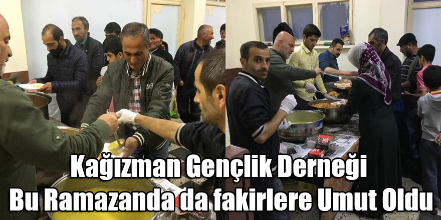 Kağızman düğün salonunda büyük bir iftar çadırı kuruldu. Hayır sever vatandaşların yardımı ve Kağızman Kağızman Gençlik Derneğince organize edilen çadır günlük 500 kişilik yemek kapasitesiyle önce misafirlere, yolculara, yardıma muhtaç olanlara iftarını beraber açmak isteyen herkese hizmet veriyor.