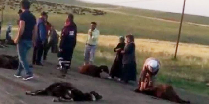 Kars'ın Kağızman ilçesinde kamyonetin koyun sürüsüne çarpması sonucu 70 koyun telef oldu.