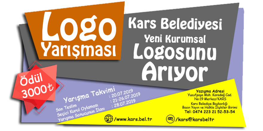 Kars Belediye Başkanlığı kurumsal logosunda değişikliğe gidiyor. Kars Belediye Başkanlığı logo değişikliği için yarışma düzenliyor.