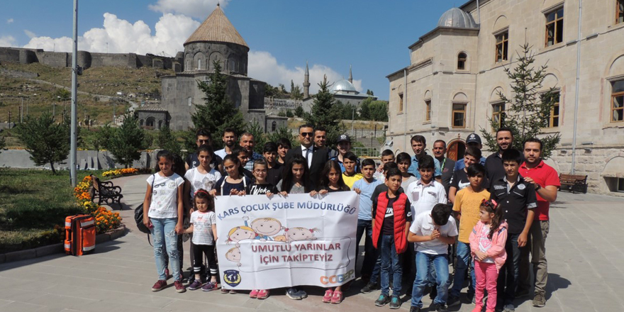 Kars İl Emniyet Müdürlüğü Çocuk Şube Müdürlüğü görevlileri tarafından yürütülen “ÇOGEP Umutlu Yarınlar İçin Takipteyiz” isimli proje kapsamında 25 çocukla yemek programı yapılarak Kars’taki tarihi ve kültürel yerlere gezi etkinliği gerçekleştirildi.