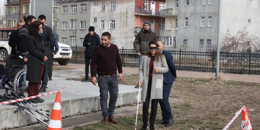 Yapılan konuşmaların ardından engelli empati parkuruna geçilerek katılımcılardan Belediye Başka Yardımcısı Şevin Alaca gözlerini bağlatarak parkuru geçmeye çalıştı. Görme engellilerin yaşadıkları zorluğun empatisini kurmak için gerçekleştirilen bu empati parkurunda katılımcılar da gözlerini bağlayıp yürümeye çalıştılar.