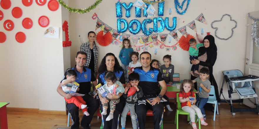 Polisler “ÇOGEP” kapsamında yürütülen “Her Çocuk Bir Umut, Her Umut Bir Gelecek” projesi kapsamında “Yuvam Kreş” ve “Gündüz Bakım Evi” ziyaret edilerek Temel Güvenlik ve Asayiş konularında bilgilendirme yapıldı. Ayrıca etkinlik sırasında çocuklara TDP Boyama Kitabı, Kuru Boya Kalemi, Balon ve çeşitli oyuncaklar hediye etti.
