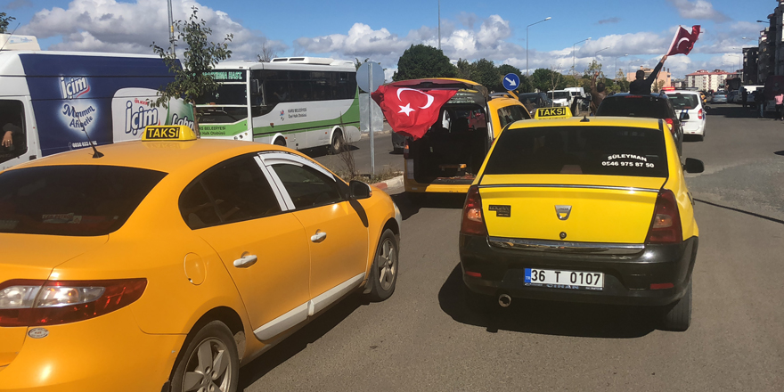 Kars’ta kendi aralarında organize olan taksi şoförleri, şehir merkezinde konvoy yaparak terörü protesto etti.