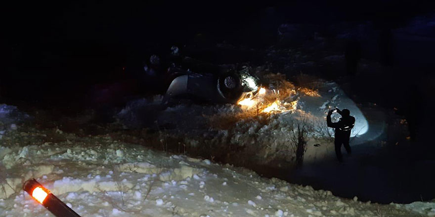 Kars'ın Arpaçay ilçesinde Kütük Ev mevkiinde otomobil kar yağışı ve buzlanma nedeniyle kayganlaşan yolda direksiyon hakimiyetini kaybederek takla attı.