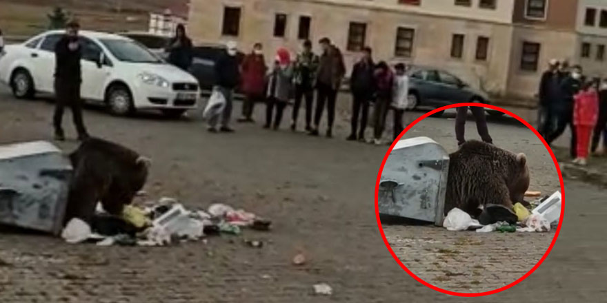 Ormanlık alandan TOKİ konutları bölgesine yiyecek aramak için gelen boz ayı çevredeki vatandaşların ilgi odağı oldu. Çöp konteynerini deviren ve karnını doyurmak isteyen boz ayıyı gören vatandaşlar çok tehlikeli olmasına rağmen yaklaşarak o anları cep telefonlarına kaydetti.