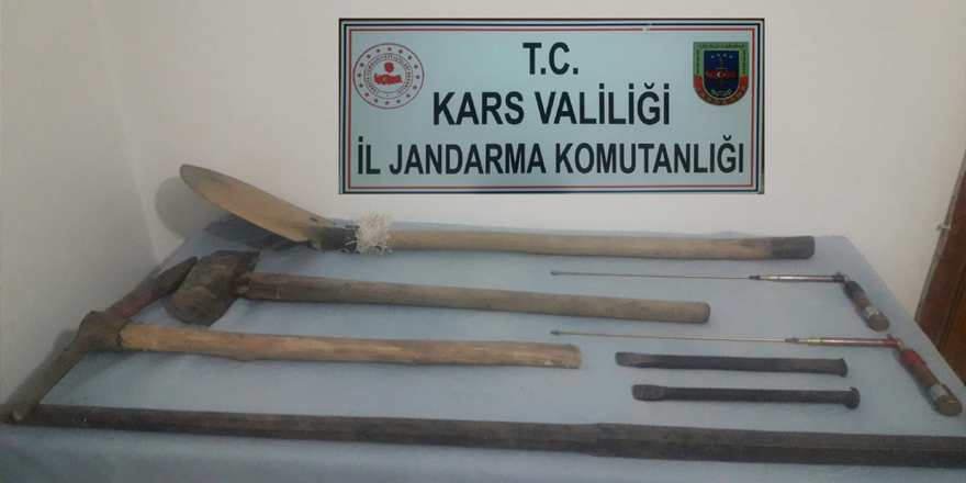 İzinsiz kazı yapılan alanda 4x1 metre genişliğinde çukur tespit edilerek, olayda kullanılan 1 adet merdiven, 1 adet kazma, 1 adet kürek, 1 adet kürek sapı, 1 adet balyoz, 3 adet murç, 2 adet altın arama çubuğu ele geçirildi. Kars Cumhuriyet Başsavcılığının talimatı ile yakalanan şahıslar gözaltına alınarak adli işleme başlanıldı