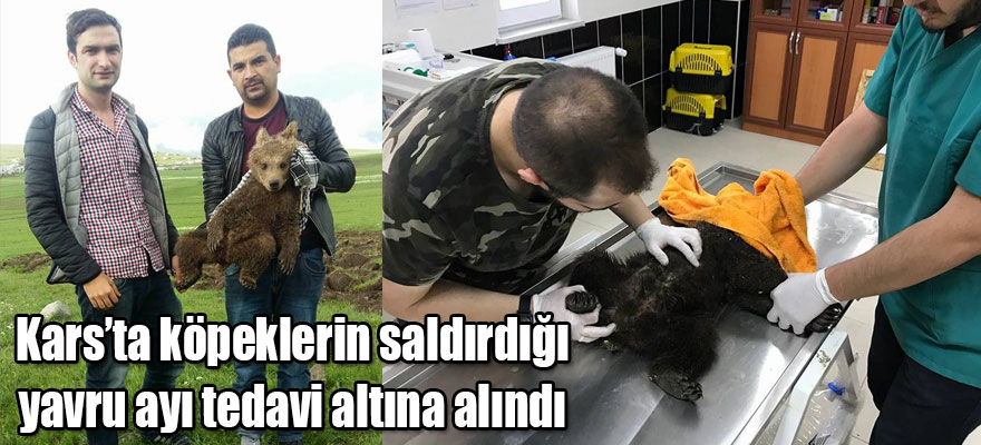 Kars’ta annesinden uzaklaşan yavru boz ayısı çoban köpeklerinin saldırısına uğradı. Yaralan yavru boz ayısı tedavi altına alındı.