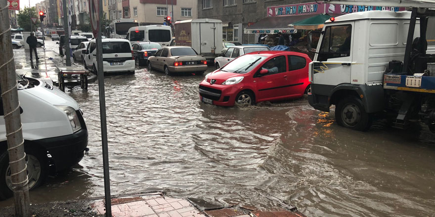 Kars'ta sağanak yağmur caddeleri göle çevirdi