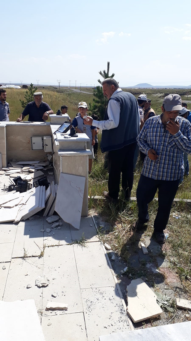 Kars’ın Arpaçay İlçesine bağlı Büyük Çatma köyünde bulunan şehitlik tahrip edildi.