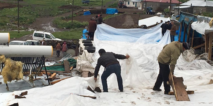 Kars’ın Susuz İlçesi’ne bağlı Kırkpınar Köyü’nde yağmurla birlikte etkili olan ve hızı saatte 100 kilometreyi bulan fırtına, çatıları yerinden sökerek metrelerce uzağa fırlattı.