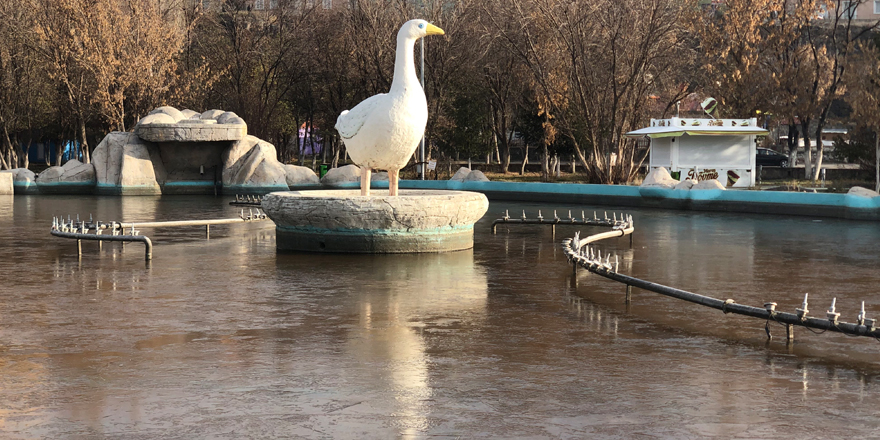 Kars’ta, termometreler eksi 9’u gördü. Kentte bulunan süs havuzları dondu.