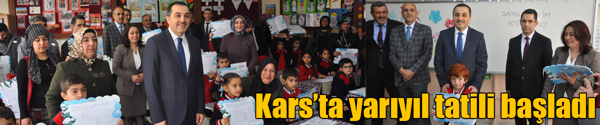 15 gün sürecek olan sömestr tatili bugün çalan son ders zili ile başladı. 624 okuldaki 3 bin 713 öğretmen, 66 bin 214 öğrenci karnelerini alarak tatile çıktı. Zübeyde Hanım İlkokulunda düzenlenen karne töreninde öğrenciler Kars Valisi Türker Öksüz’ün elinden karnelerini aldı.