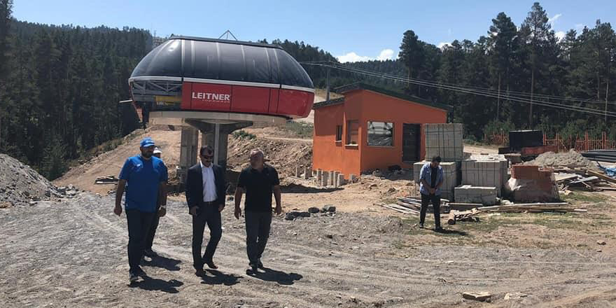 Sarıkamış Kaymakamı Recep Koşal, Sarıkamış Kayak merkezinde yapımı devam eden yeni telesiyej hattını yerinde inceledi.