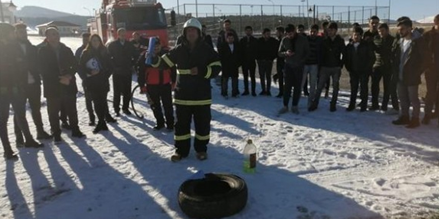 İş Sağlığı ve Güvenliği ile Özel Güvenlik ve Koruma Programı öğrencilerine Öğretim Görevlisi Şeref Uyar tarafından verilen yangın eğitiminin ardından Sarıkamış Belediyesi İtfaiye Amirliği ekipleri tarafından yangın tatbikatı yaptırıldı.