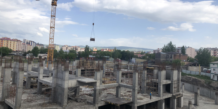 Kars'ın en işlek caddelerinden birisi olan Faikbey Caddesi eski işhanının yerine yapımına başlanan ve havaların soğumasıyla birlikte yapım çalışmaları durdurulan Sultan Alparslan Külliyesi'nin yapımı kaldığı yerden devam ediyor.