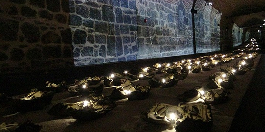 2 Aralık 1914 tarihinde başlayan ve 90 bin kahraman Osmanlı askerinin donarak ve hastalanarak hayatını kaybettiği Sarıkamış Harekatı’nda askerlerin ayaklarında bulunan çarıklar, ışıklandırılarak şehitlerin sonsuza kadar anılması için bir görüntü oluşturulmuş. Çarıkların olduğu bölümü ziyaret edenler ise gözyaşlarına boğuyor.