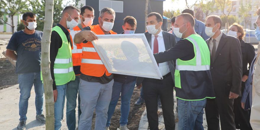 Kars Valisi Türker Öksüz, yapım çalışması devam eden Örnek Mahallesi Millet Bahçesini ziyaret etti.