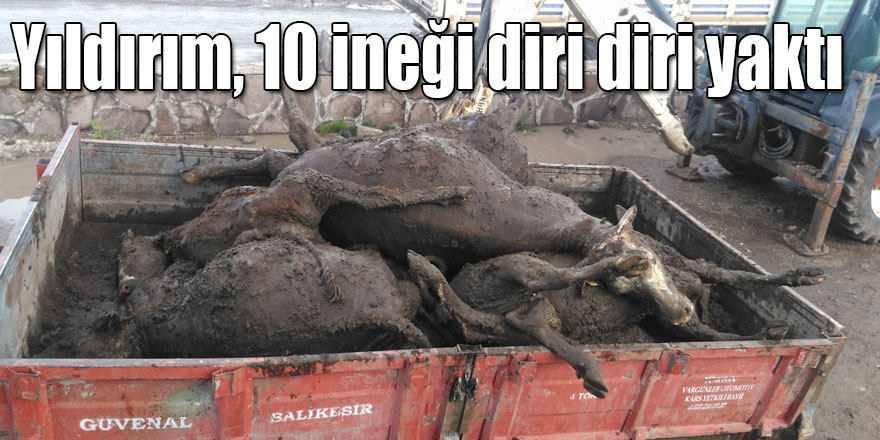 Kars’ın Digor ilçesine bağlı Dağpınar Beldesi kırsalında düşen yıldırım 10 ineği diri diri yaktı.