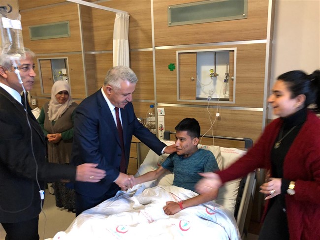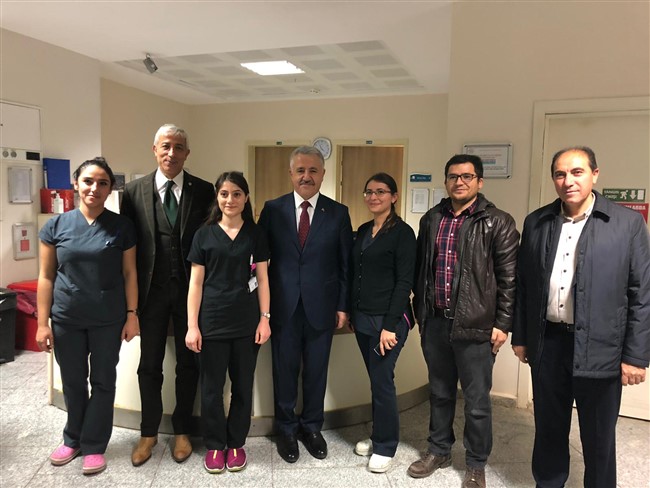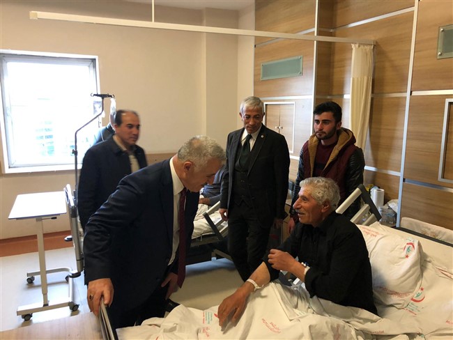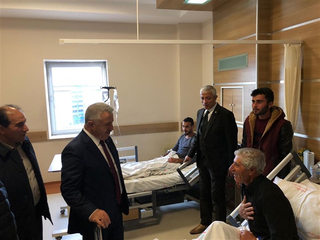 Arslan ve Kılıç, Kafkas Üniversitesi Araştırma ve Uygulama Hastanesinde yatan kazazedeleri ziyaret etti.