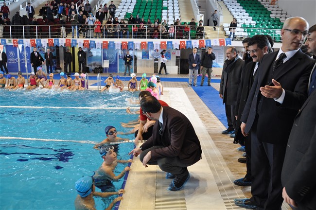 Bakan Mehmet Muharrem Kasapoğlu, daha sonra bir süre yüzme öğrenen çocuklarla sohbet eden Bakan Kasapoğlu, çocuklara bazı hediyeler verdi.