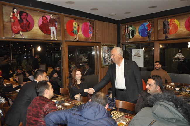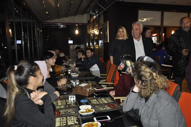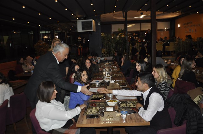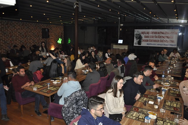 Başkan Altay daha sonra masaları dolaşarak öğretmenlerin Öğretmenler Gününü kutladı.