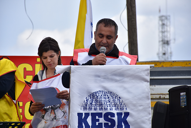 1 Mayıs Tertip Komitesi Başkanı Yılmaz İnce, “Eşit, adil, özgür, laik ve barış içinde yaşayacağımız bir dünyayı yaratmak için, kurtuluşumuzun kendi ellerimizde olduğunu biliyoruz.” dedi.