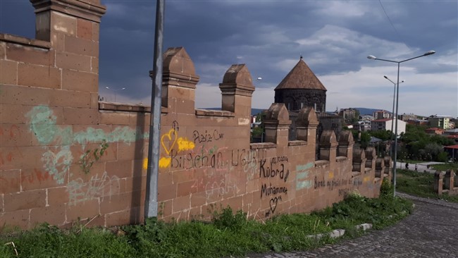 Tarihi Kars Kalesi ve çevresinde mevcut kültürel varlıkların üzerine sorumsuz ve kendini bilmez kişiler tarafından yazılan yazılar şehri gezen yerli ve yabancı turistleri de şaşkına çevirdiği gibi rehberleri de utandırıyor.