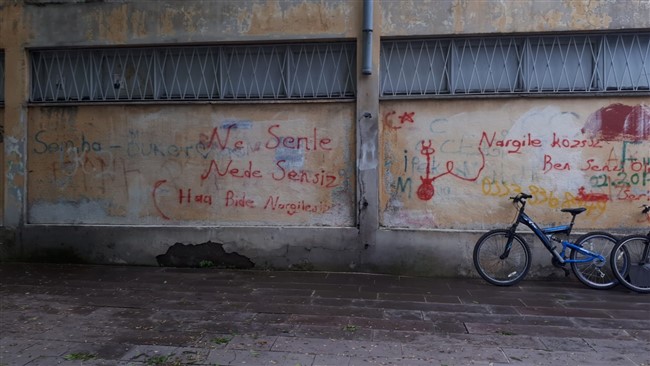 Yerel basında sık sık gündeme taşımamıza rağmen, kendini bilmez ve yaşadığı şehre ihanet etmeyi alışkanlık haline getirmiş bazı kişiler, tarihi varlıklar başta olmak üzere boş gördükleri her duvara yazdıkları yazılarla utandırmaya devam ediyor.