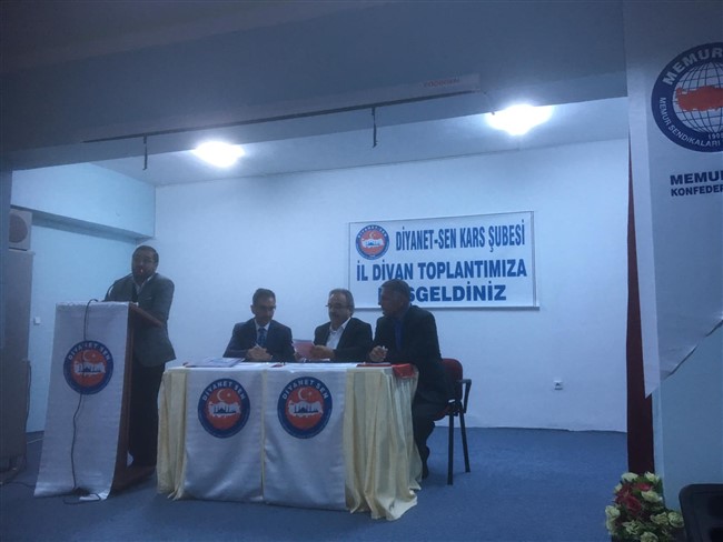 Divan kurulunun Mehmet Yaman, Cengiz Çıtrak ve Coşkun Büyüktanır isimlerinden oluşturulan Divan Kurulunun arından Diyanet Sen Kars Şube Başkanı açılış konuşması yaptı.