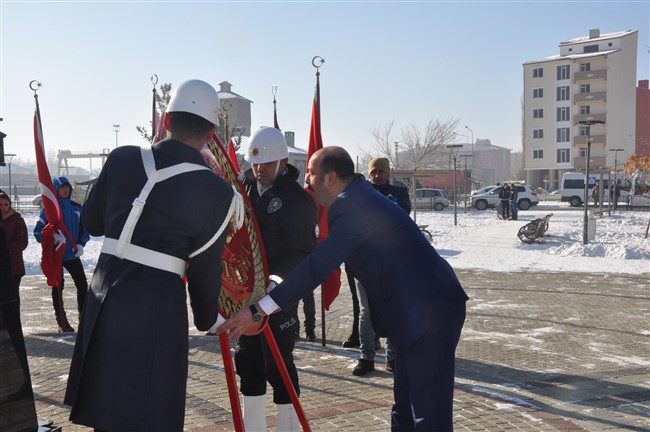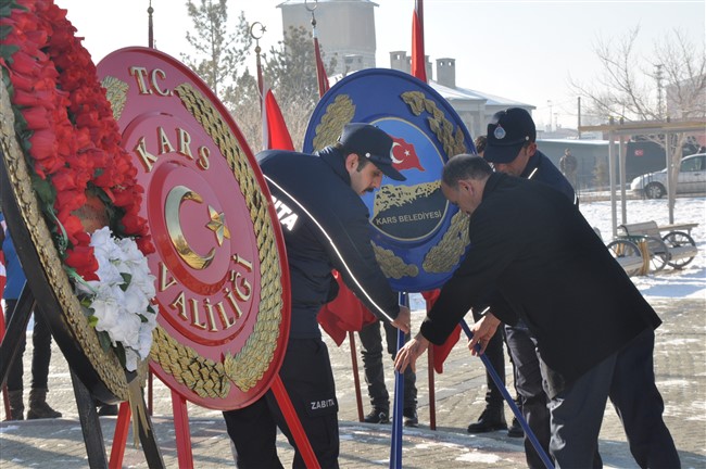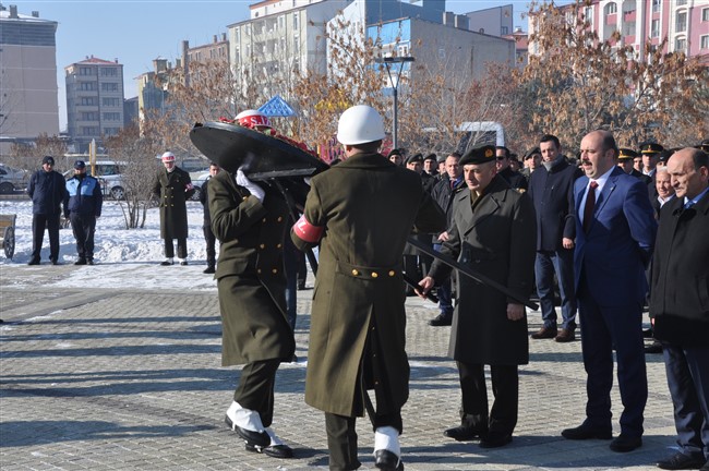 Kazım Karabekir Paşa'nın Anıtı'na Valilik, Garnizon Komutanlığı ve Belediye Başkanlığı çelenkleri konulduktan sonra Saygı Duruşunda bulunuldu. İstiklal Marşı okunmasıyla başlayan törende adeta nefesler dondu.