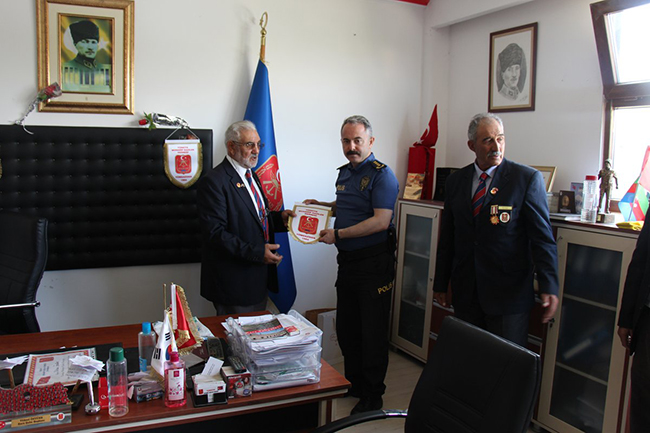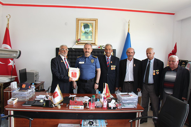 Türkiye Muharip Gaziler Derneği Kars Şubesi Başkanı Yüksel Öztürk ve yönetim kurulu üyeleri ile bir süre sohbet eden İl Emniyet Müdürü Ümit Bitirik, hatıra fotoğrafı çektirdi.
