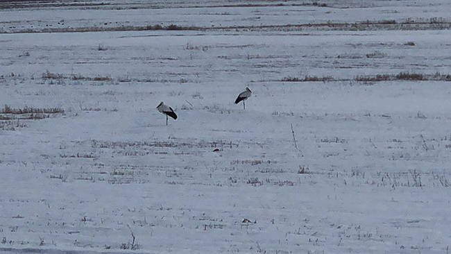 Göç edemeyen leylekler eksi 28 derecede Kars’ta yaşıyor