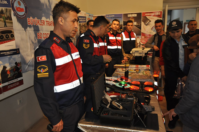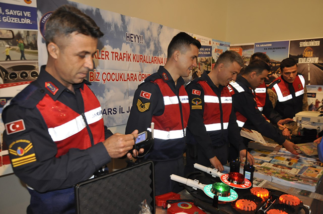 Halk Eğitim Merkezinde düzenlenen etkinlikte açılan stantta, Jandarma ekiplerin il genelinde kullandıkları araç ve gereçler, Vali Türker Öksüz, Emniyet Müdürü Ümit Bitirik, İl Jandarma Alay Komutanı Albay Osman Kılıç ile birlikte katılımcılara tanıtıldı.