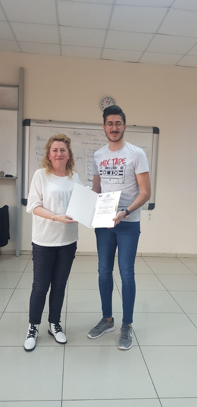Eğitim sonrası öğrencilere katılım sertifikaları verildi.
