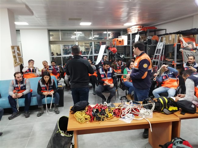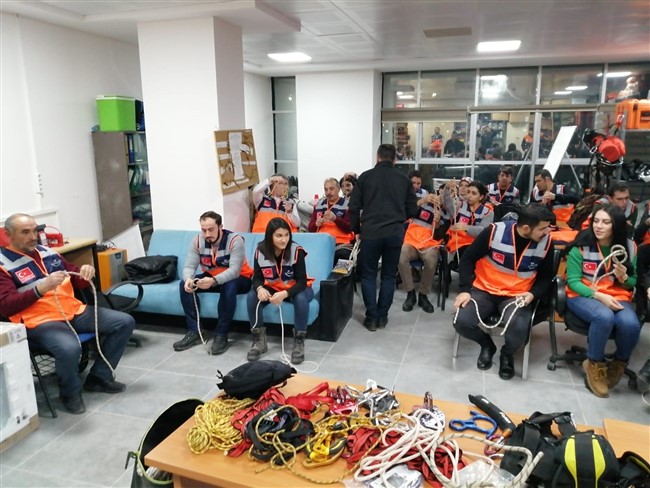 Afet ve Acil Durum Yönetimi Başkanlığı (AFAD) gönüllülerine ip düğümleme çeşitleri eğitimi verildi