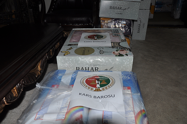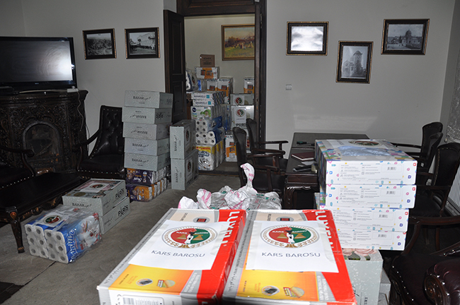 Kars Barosu, çok sayıda battaniye, kuru gıda, yardım malzemesi ve giysileri paketleyerek bugün deprem bölgesine gönderdi.