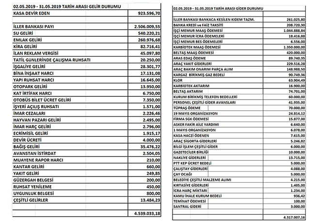 Kars Belediye Başkanlığı Mayıs ayı gelir gider tablosunu açıkladı