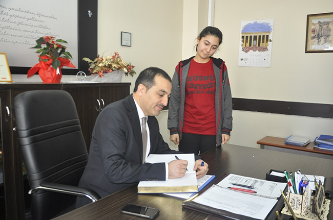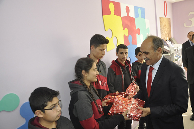 Okul şeref defterini imzalayan Vali Öksüz, okulun kütüphanesinde incelemede bulunduktan sonra okuldan ayrıldı.